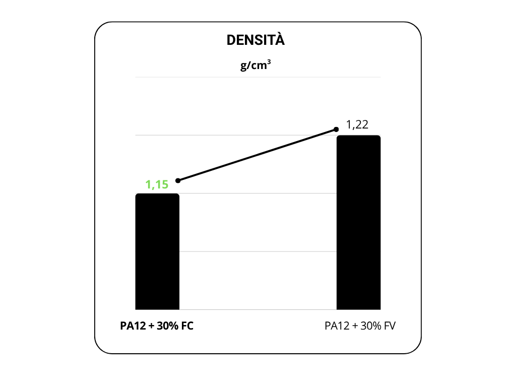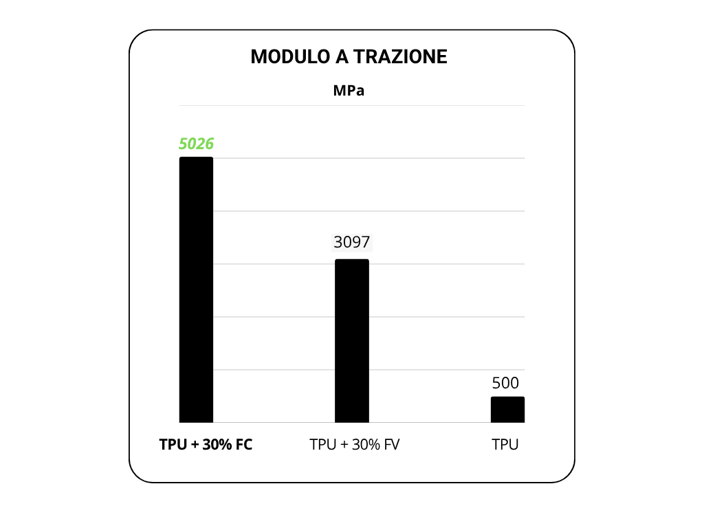 L’integrazione di percentuali variabili di fibra con differenti matrici polimeriche consente di sviluppare materiali con proprietà meccaniche e prestazionali diversificate, in grado di soddisfare esigenze applicative mirate.